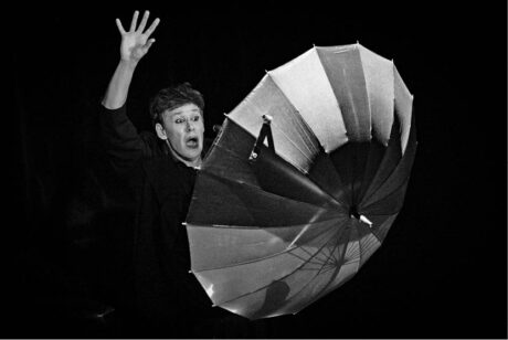 Deštník se v rukou Radima Vizváryho proměňuje v satelit a poté i raketu FOTO ANNA ŠOLCOVÁ