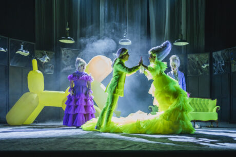 Ludvík XVI. (Ondřej Kolín) a Marie Antoinetta (Karolína Baranová), v pozadí dvorní dámy v podání Jany Hejret Vojtkové a Elišky Jansové.