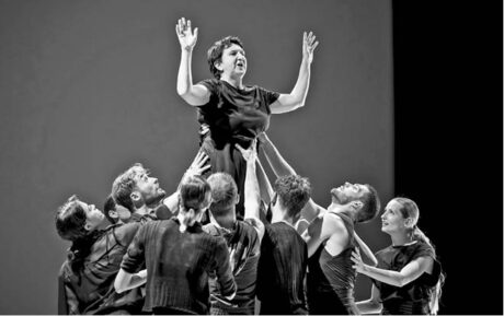 Silvia Gribaudi (uprostřed) v Grand jeté vystupuje v roli potřeštěného baletního mistra FOTO VOJTĚCH BRTNICKÝ